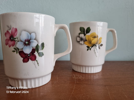 UitverkochtSet 2 hoge kopjes Boch "Delta" Série de 6 Fleurs