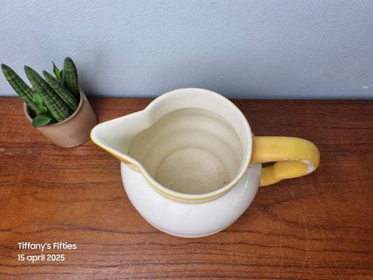 Brocante schenkkan met gele rand