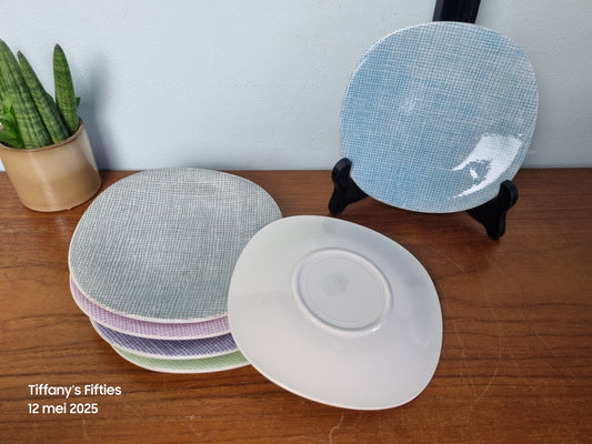 Vintage gebaksbordjes Boch Fil à Fil pastel