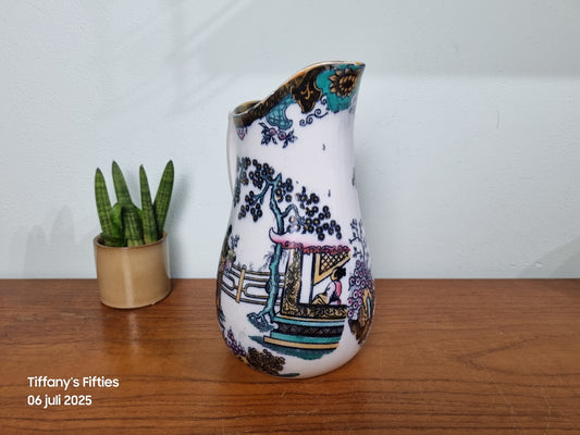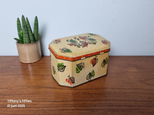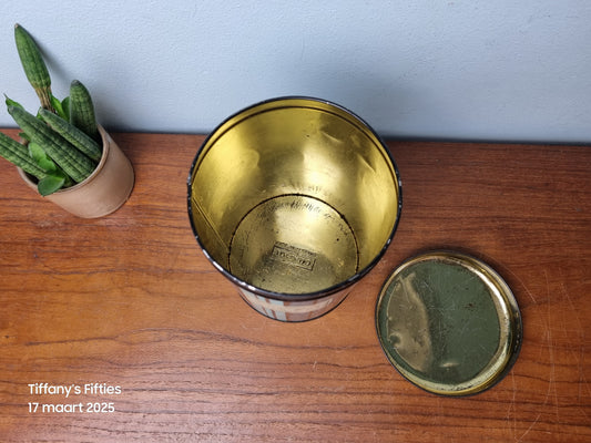 Vintage voorraadpot theetafereel – wit met bruin deksel