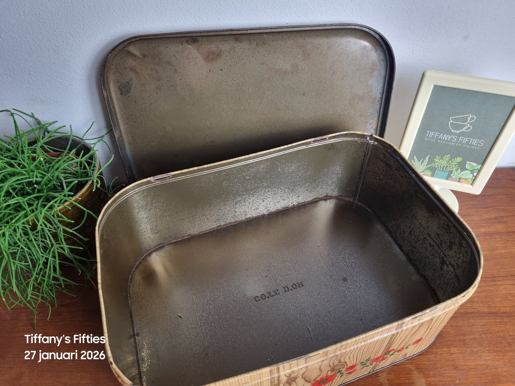 Ideaal als naaidoos, koekendoos of opbergdoos voor kleine spullen. Ook mooi als decoratief item in een vintage keuken of interieur.