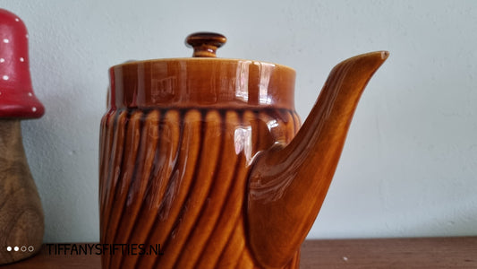 Oude brocante koffiepot Boch "Namur" paarse bloemen