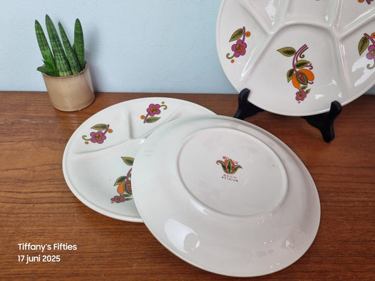 Vintage gebaksbordjes Boch Fil à Fil pastel
