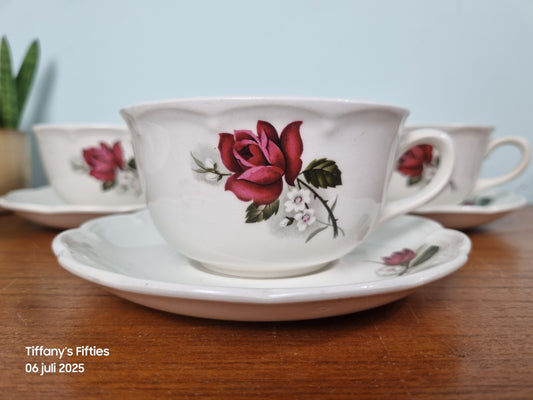 UitverkochtSet 4 vintage glazen - rood-oranje bloemenprint