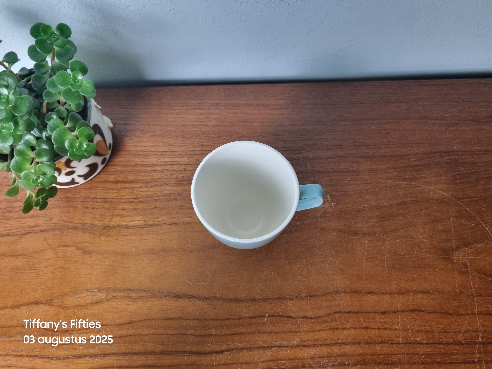 Deze mok past perfect in een retro keuken en laat zich mooi combineren met ander servies uit de Jolanda-reeks.
