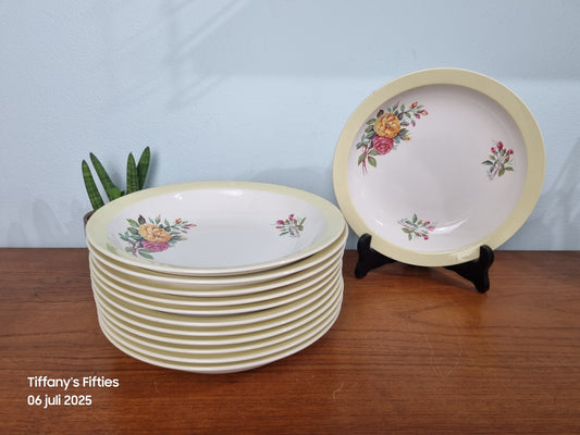 UitverkochtDiep bord P. Regout - roze en gele pioenroos