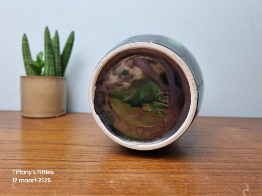 Vintagen plantenpot bruin met lijnen