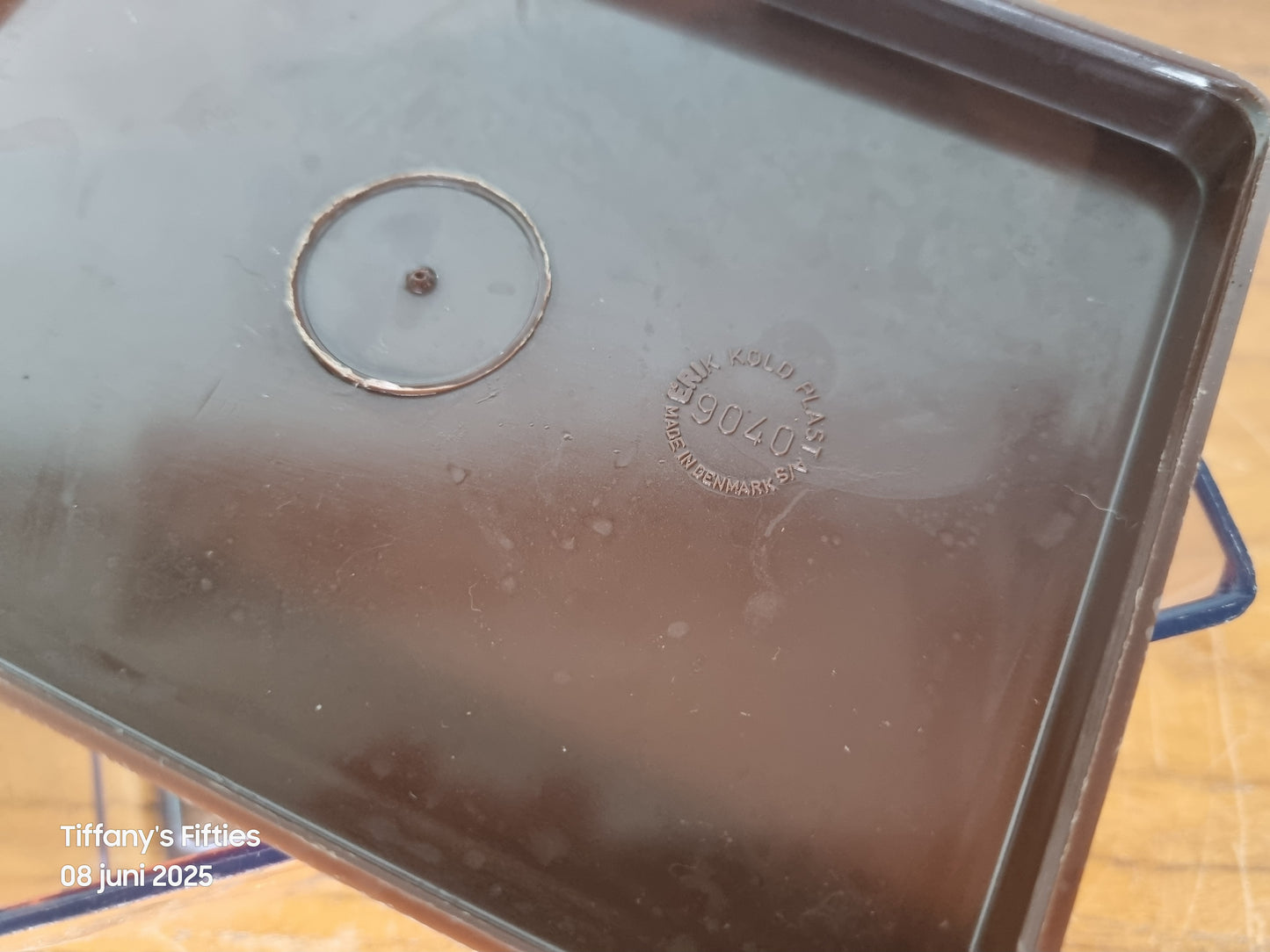 In goede vintage staat met gebruikssporen. Perfect voor het bewaren van droge voeding, naaigerei of bureauaccessoires – of gewoon als kleurrijk accent in je retro keuken of interieur. Een stukje Deens design met nostalgische flair.