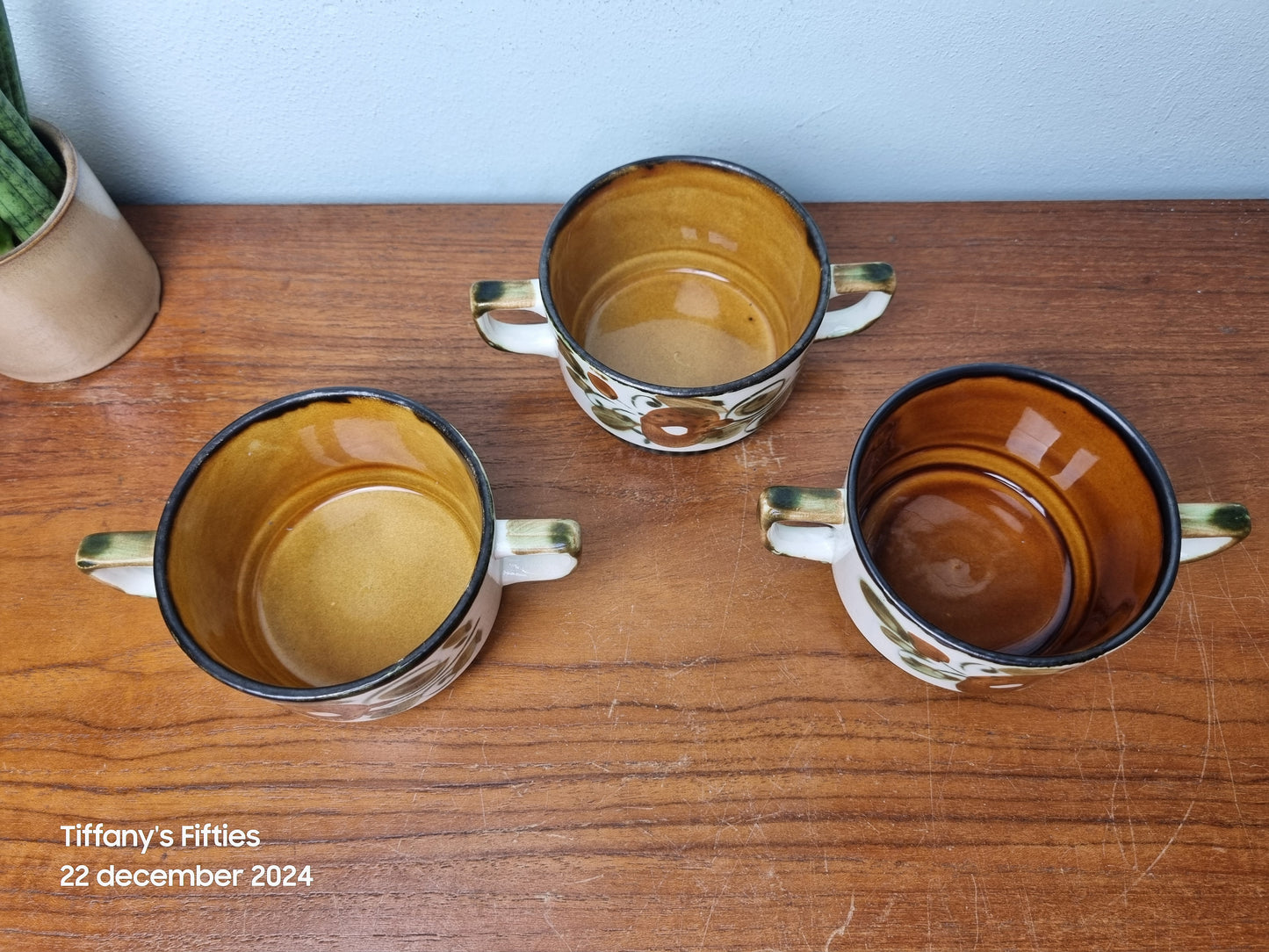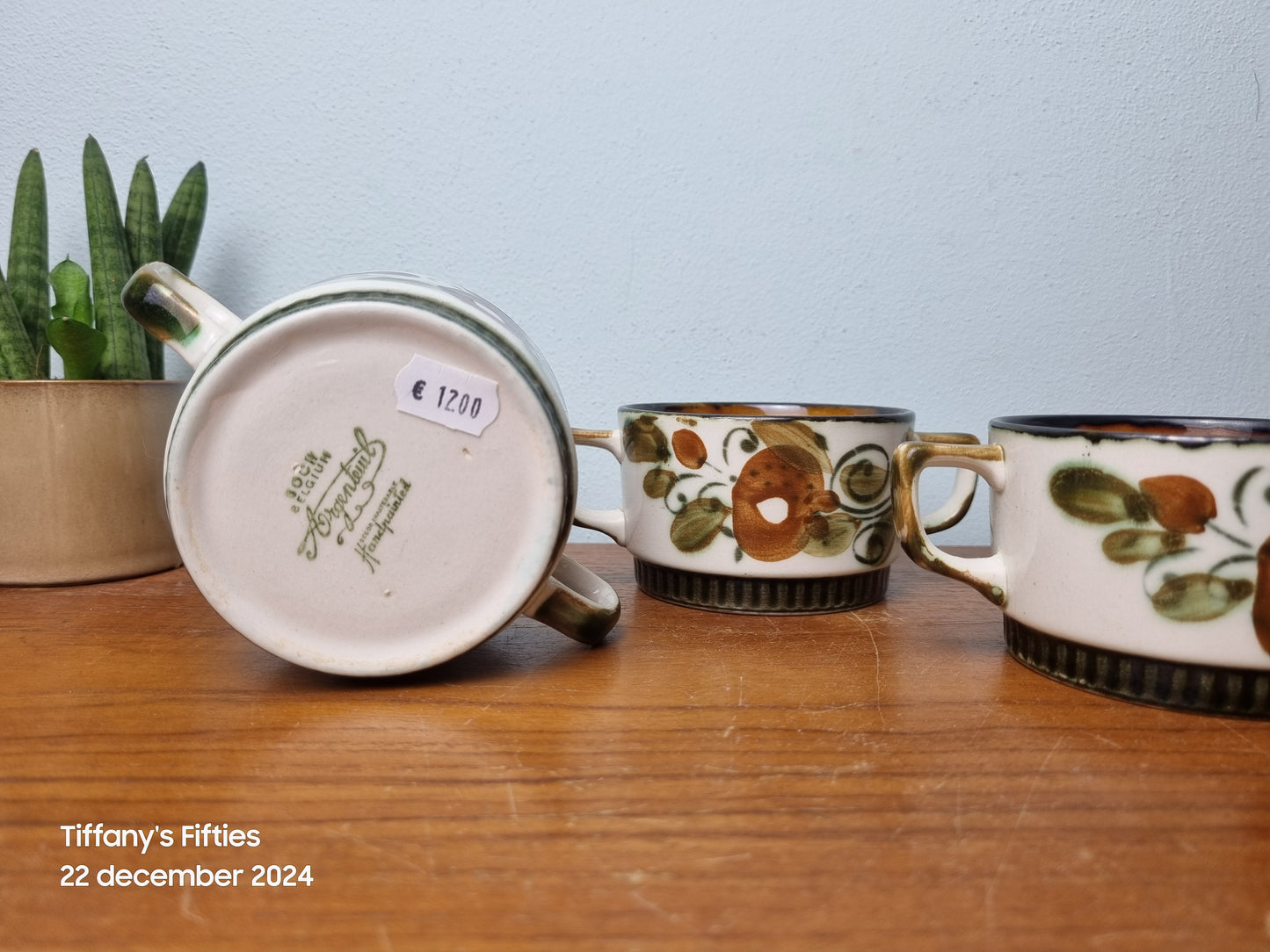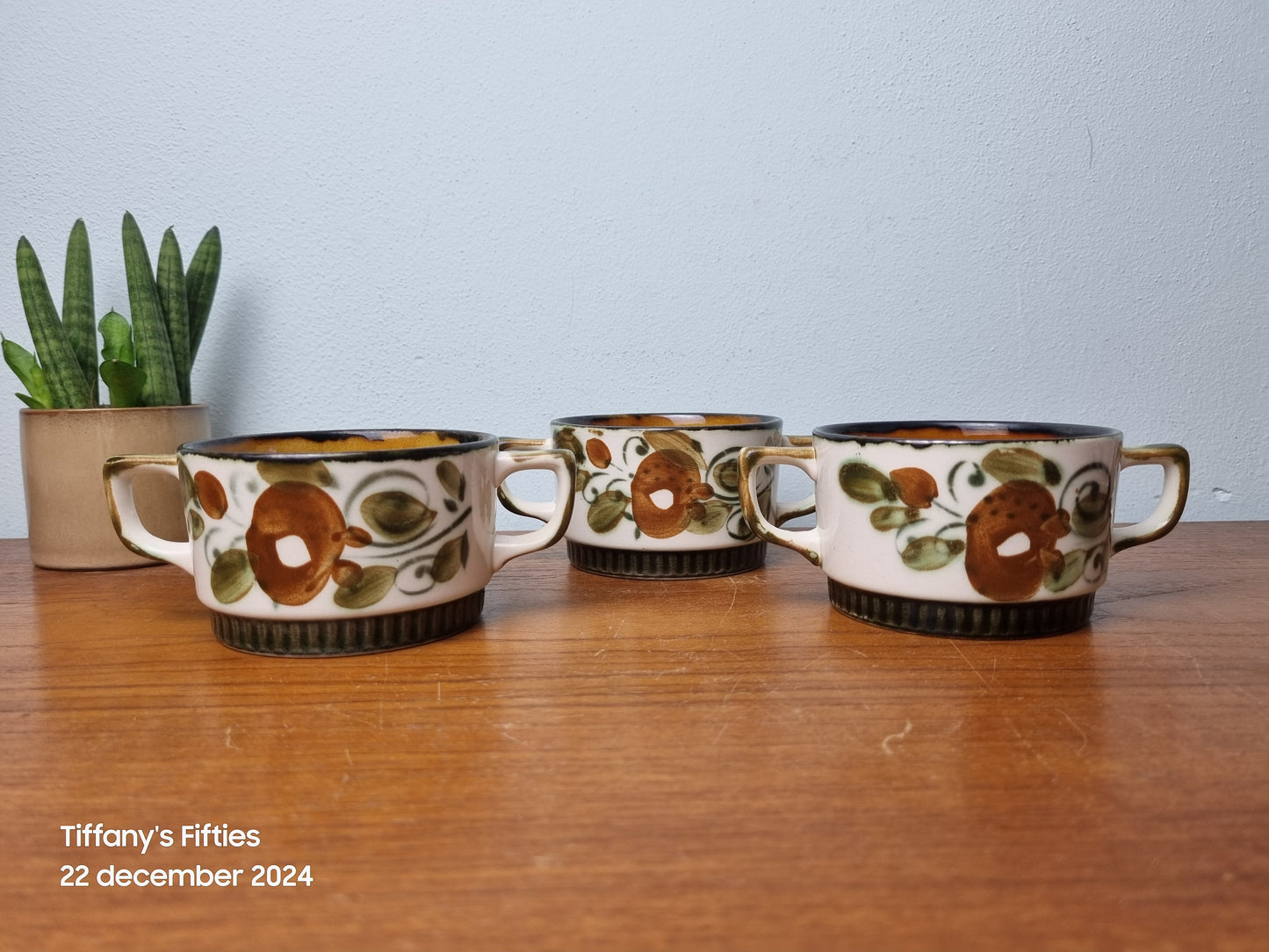 Vintage handgeschilderde consommé kommetjes van Boch decor Argenteuil uit de reeks Delta van 1966. Elk in prima staat. Prijs per stuk.