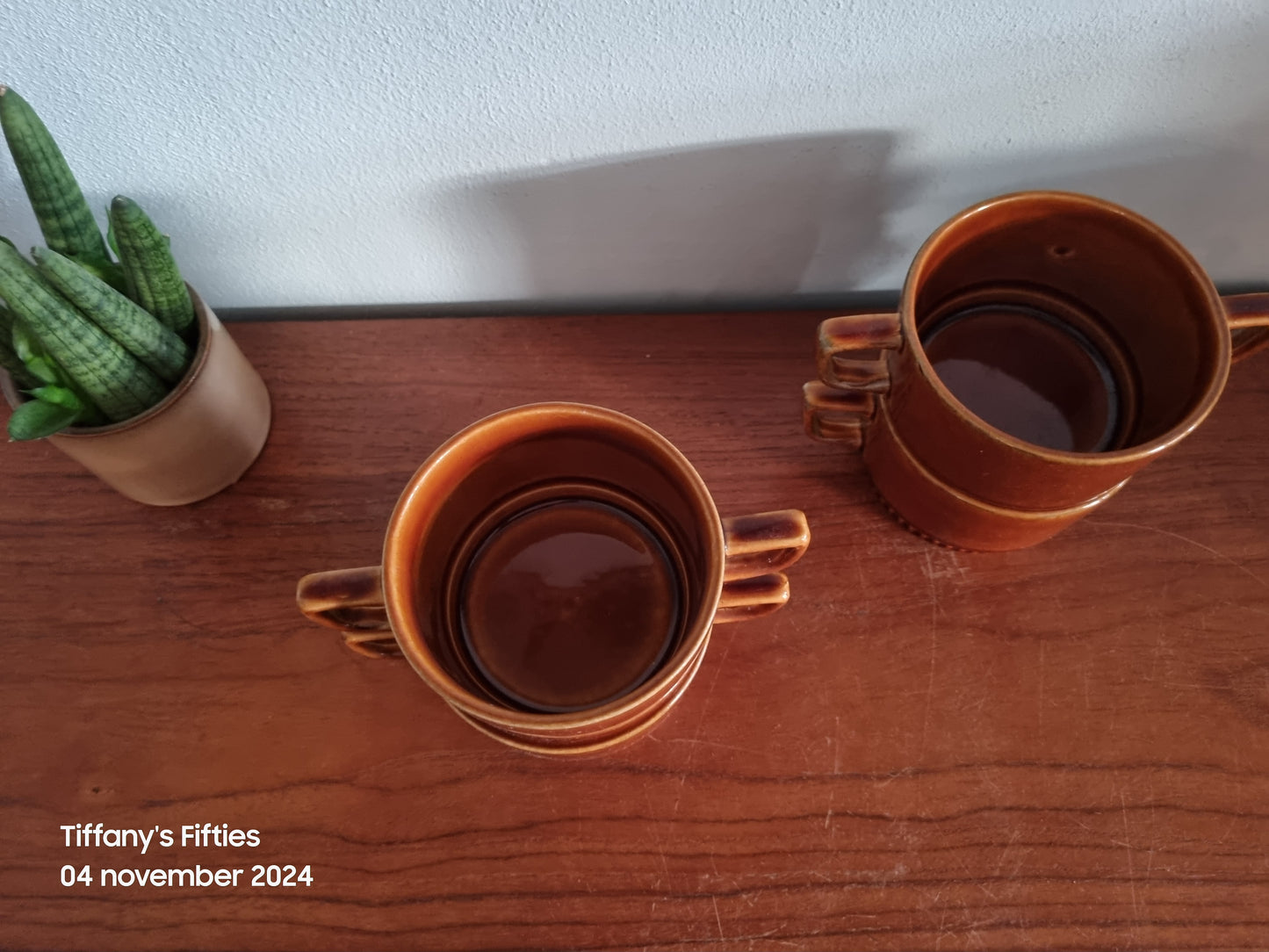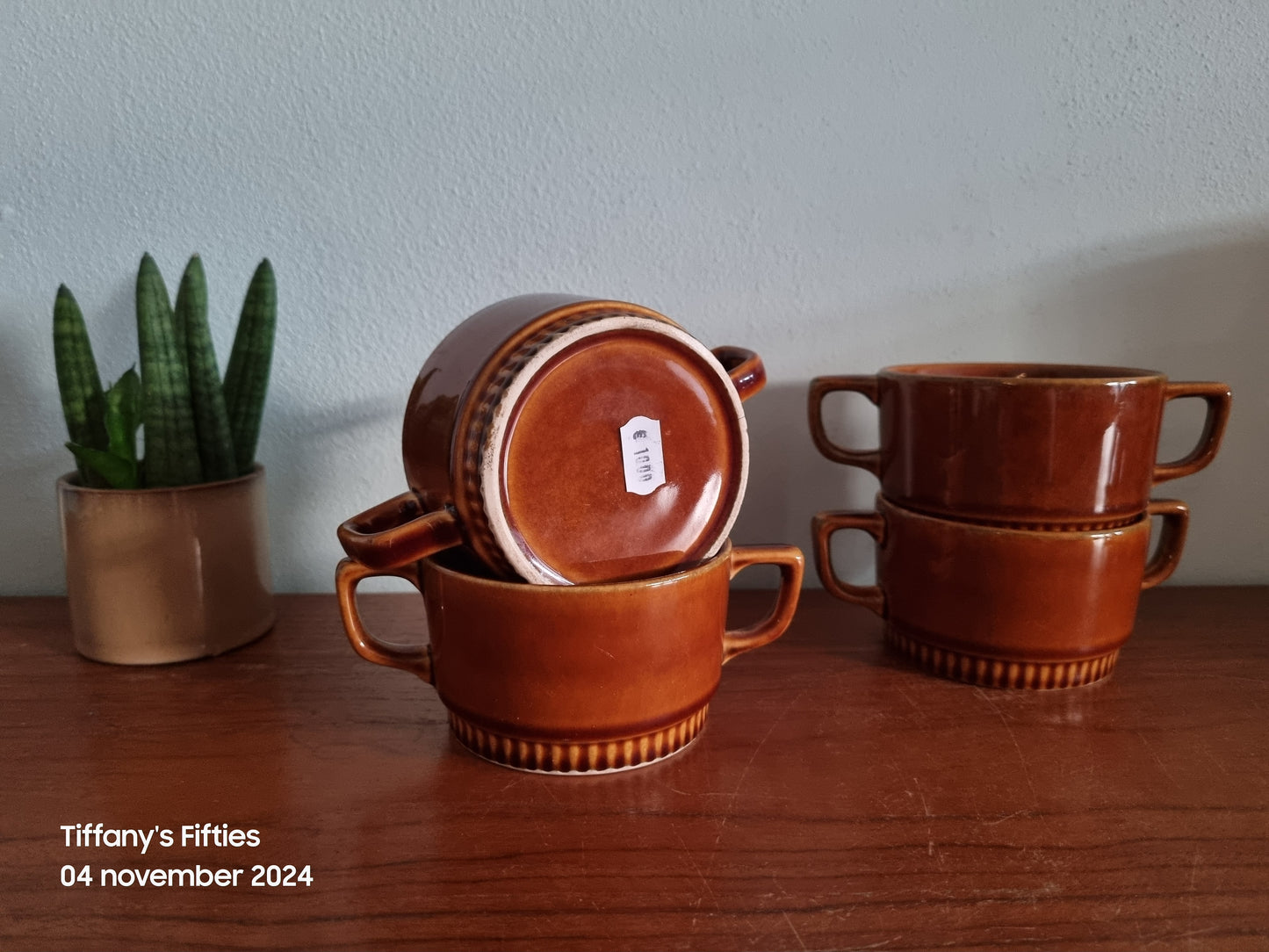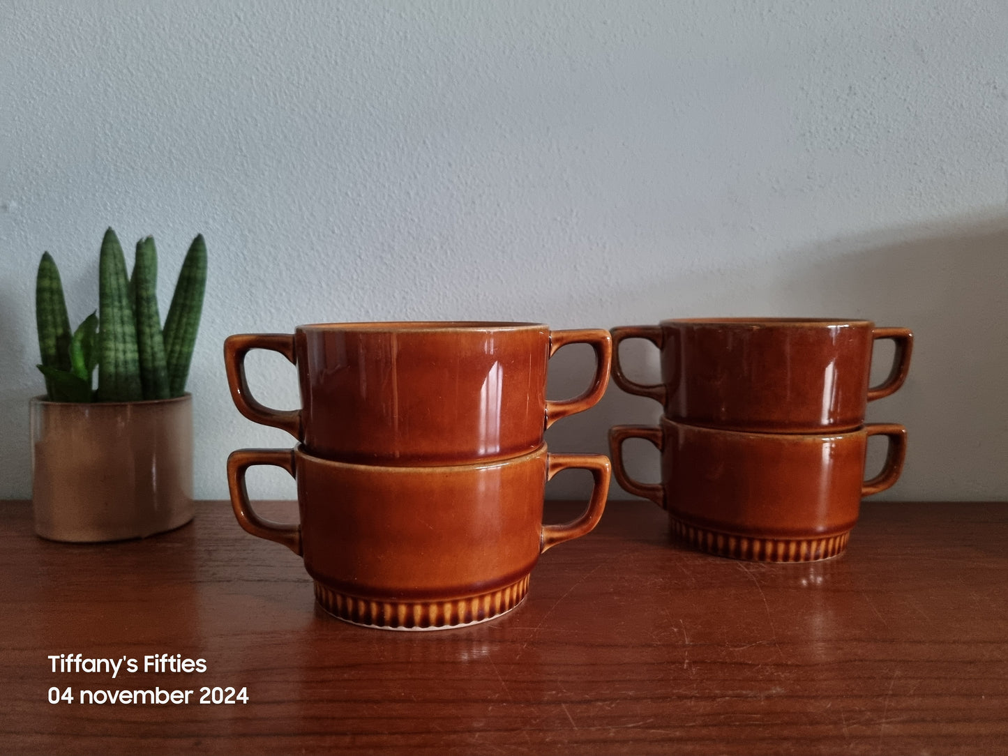 Consommé (bouillon) kommetjes van Boch La Louviere in effen bruin. Mooi te combineren met verschillende decors uit de Delta reeks. Elk in prima staat. De kommen zijn niet gemerkt.