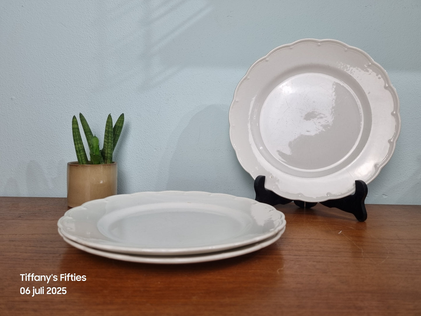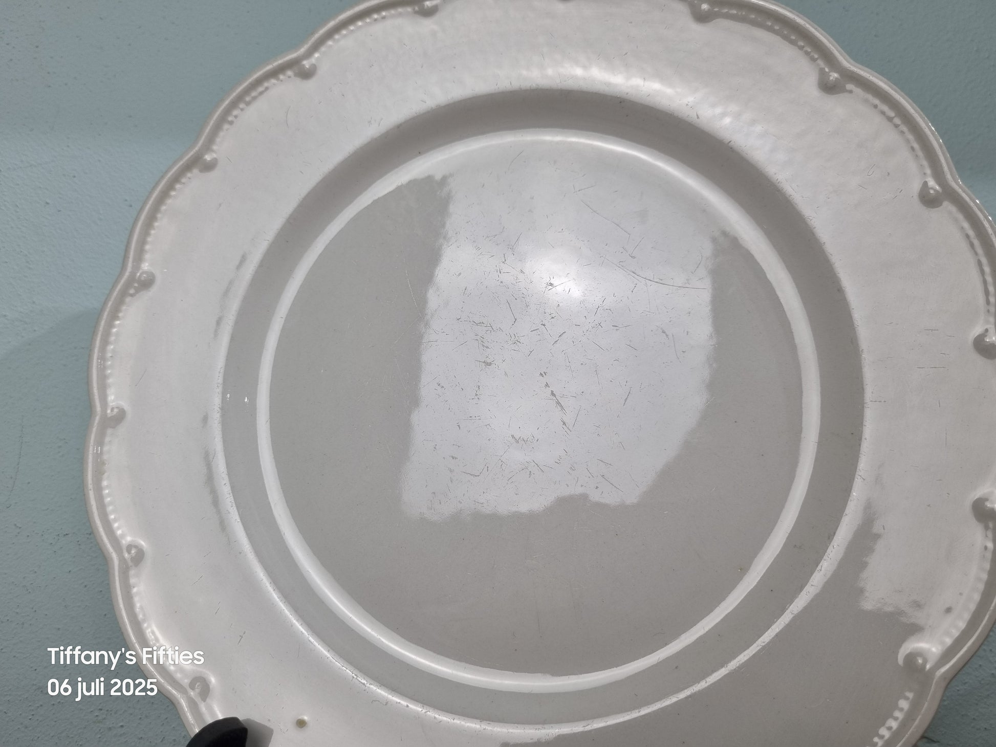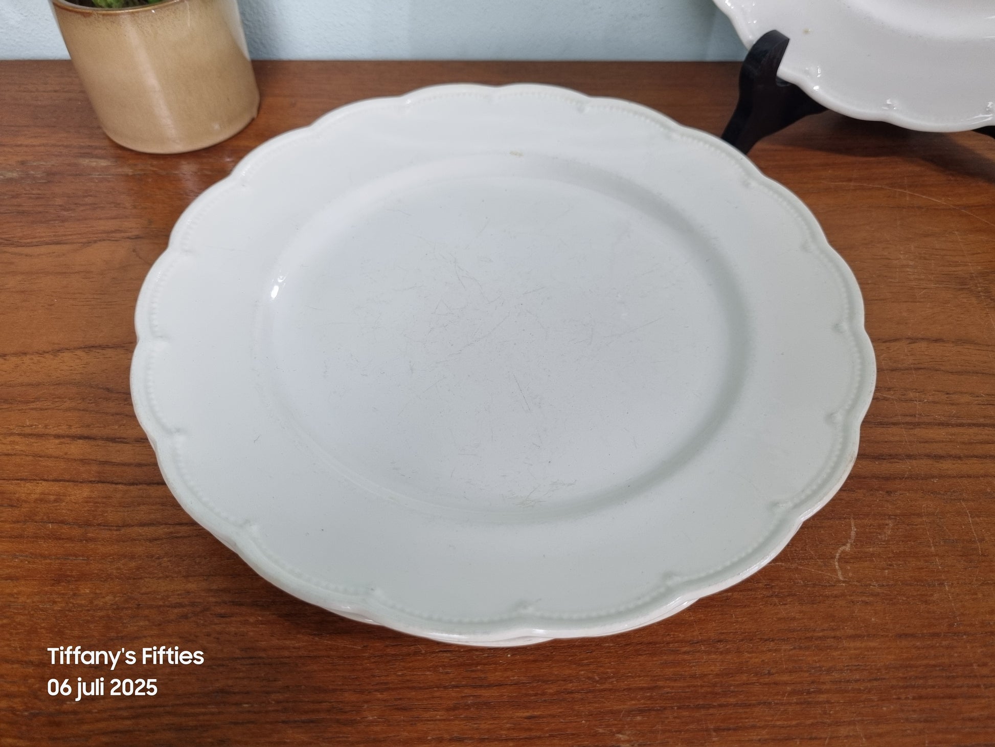 Deze ivoorwitte borden uit de geliefde Festival-reeks van Boch combineren eenvoud met verfijning. Het zachte, crèmekleurige glazuur krijgt extra charme door het sierlijke, gegolfde randje — een klassiek detail op dit vintage servies.