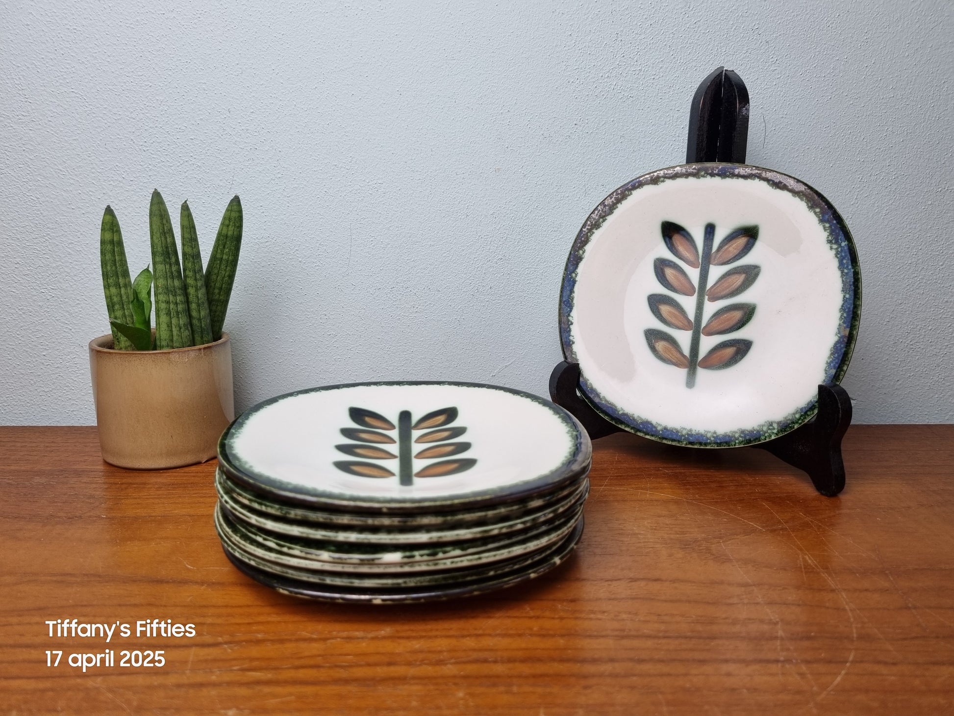 Een echte eyecatcher voor wie houdt van mid-century servies met een rustiek, Scandinavisch geïnspireerd karakter. Perfect voor taart, gebak of een sfeervol ontbijt. In goede vintage staat – met minimale gebruikssporen passend bij de leeftijd. Authentiek Belgisch design met een warme, natuurlijke uitstraling. Diameter 15 cm.