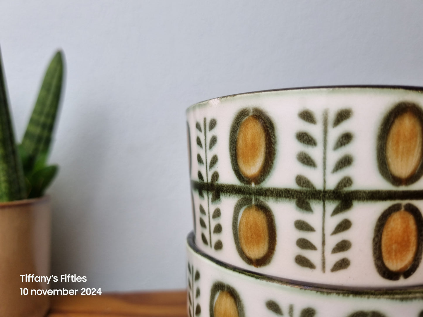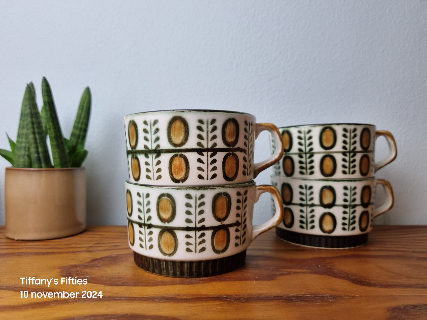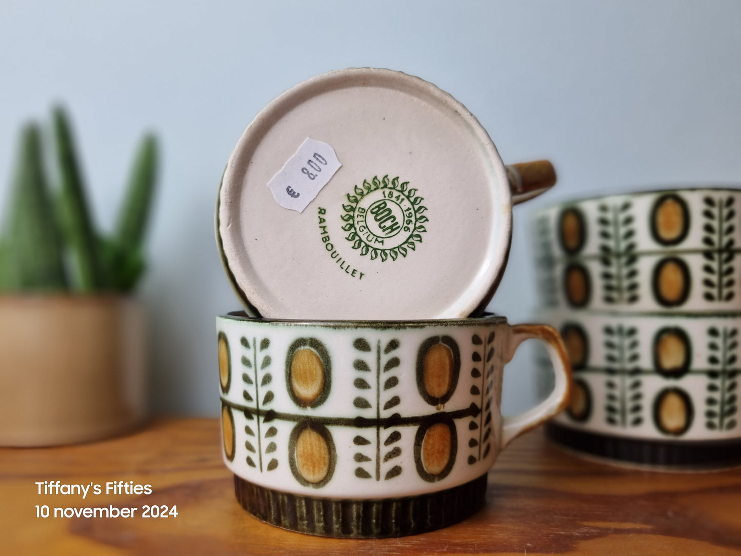 Grote mokken van Boch La Louviere met handgeschilderd vintage decor Noix. Elk in mooie staat. Diameter 9,5cm.