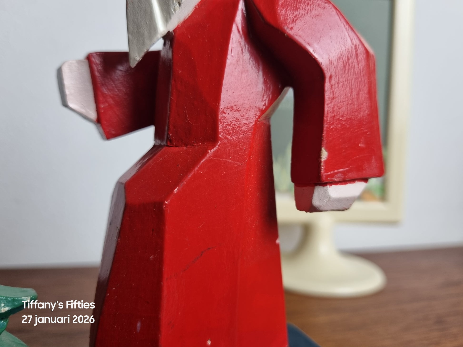De eenvoud van de vormen, de matte kleuren en de lichte gebruikssporen geven dit stuk een warme, authentieke uitstraling. Mooi als centerpiece op een dressoir, vensterbank of feesttafel tijdens de kerstperiode.