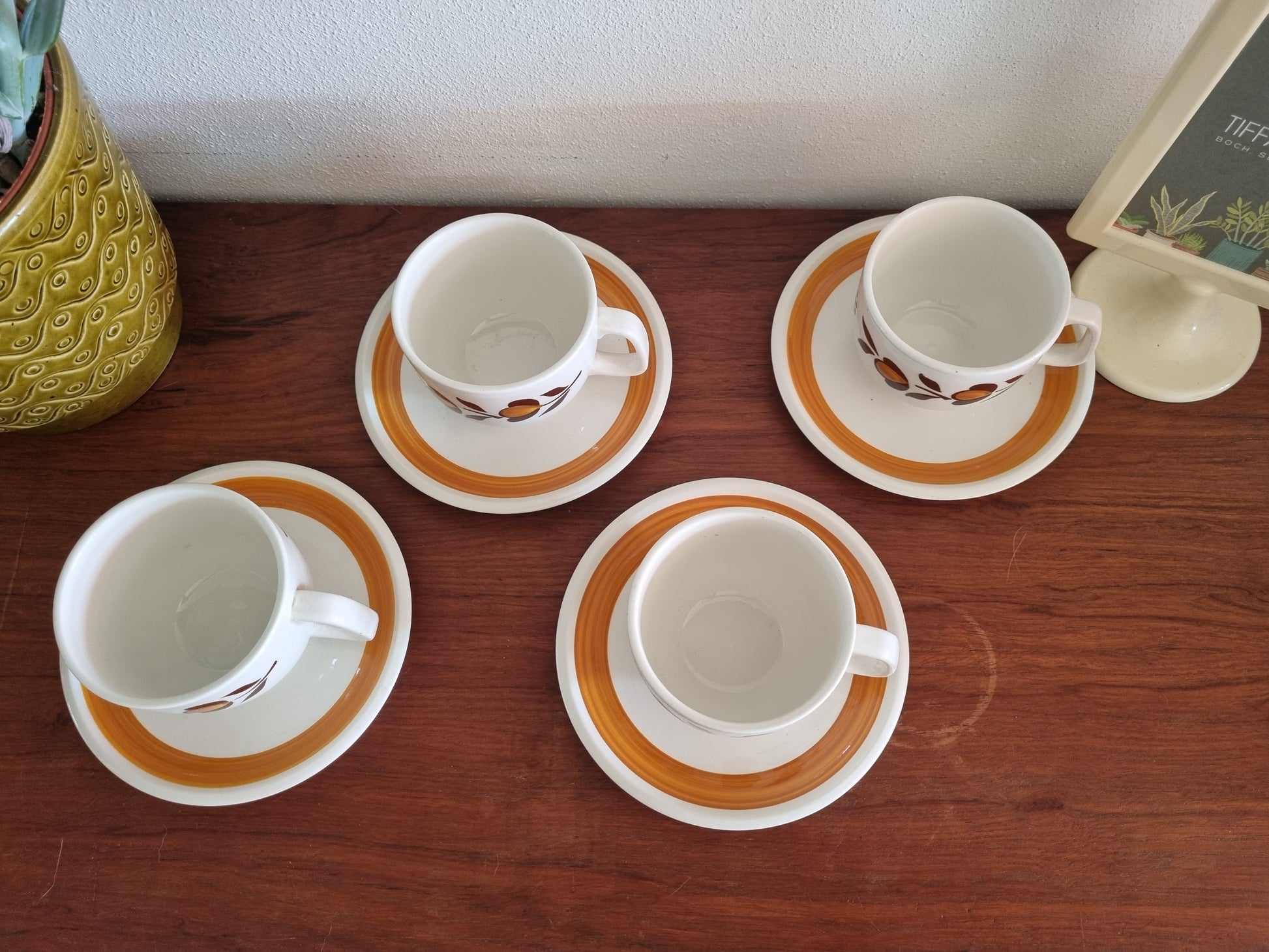 Een charmant setje dat perfect past bij een retro koffietafel of om te combineren met ander Boch servies uit dezelfde periode.