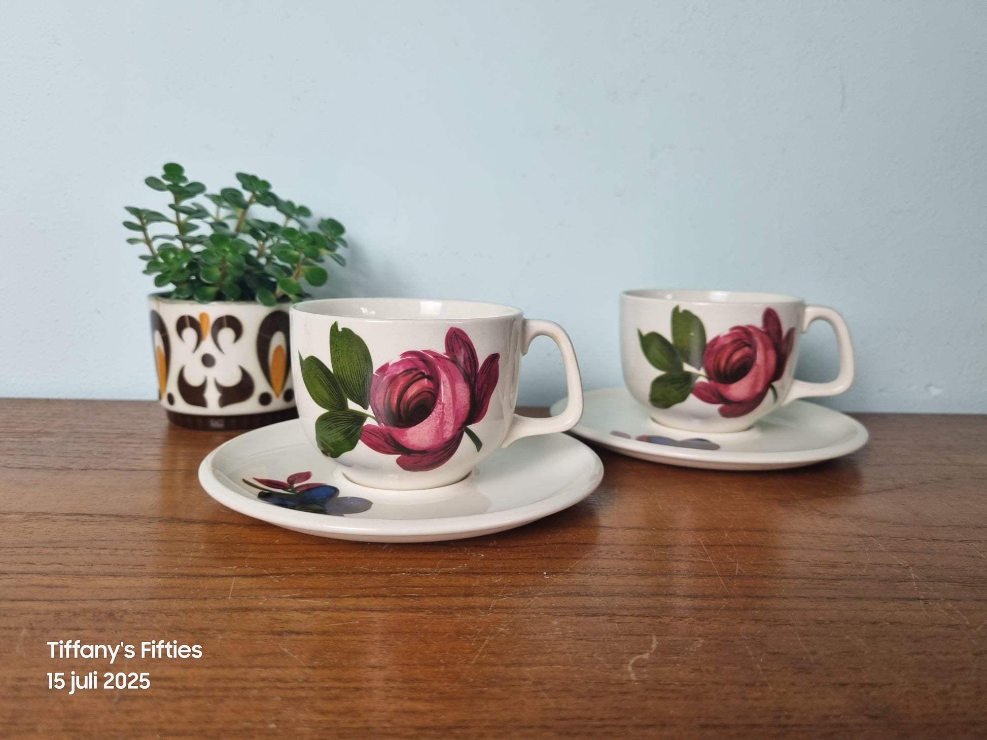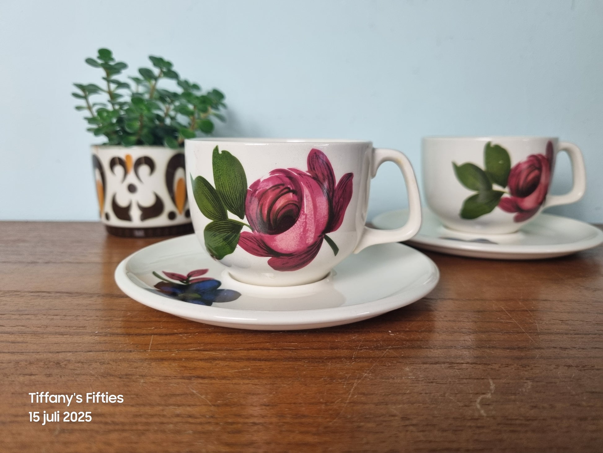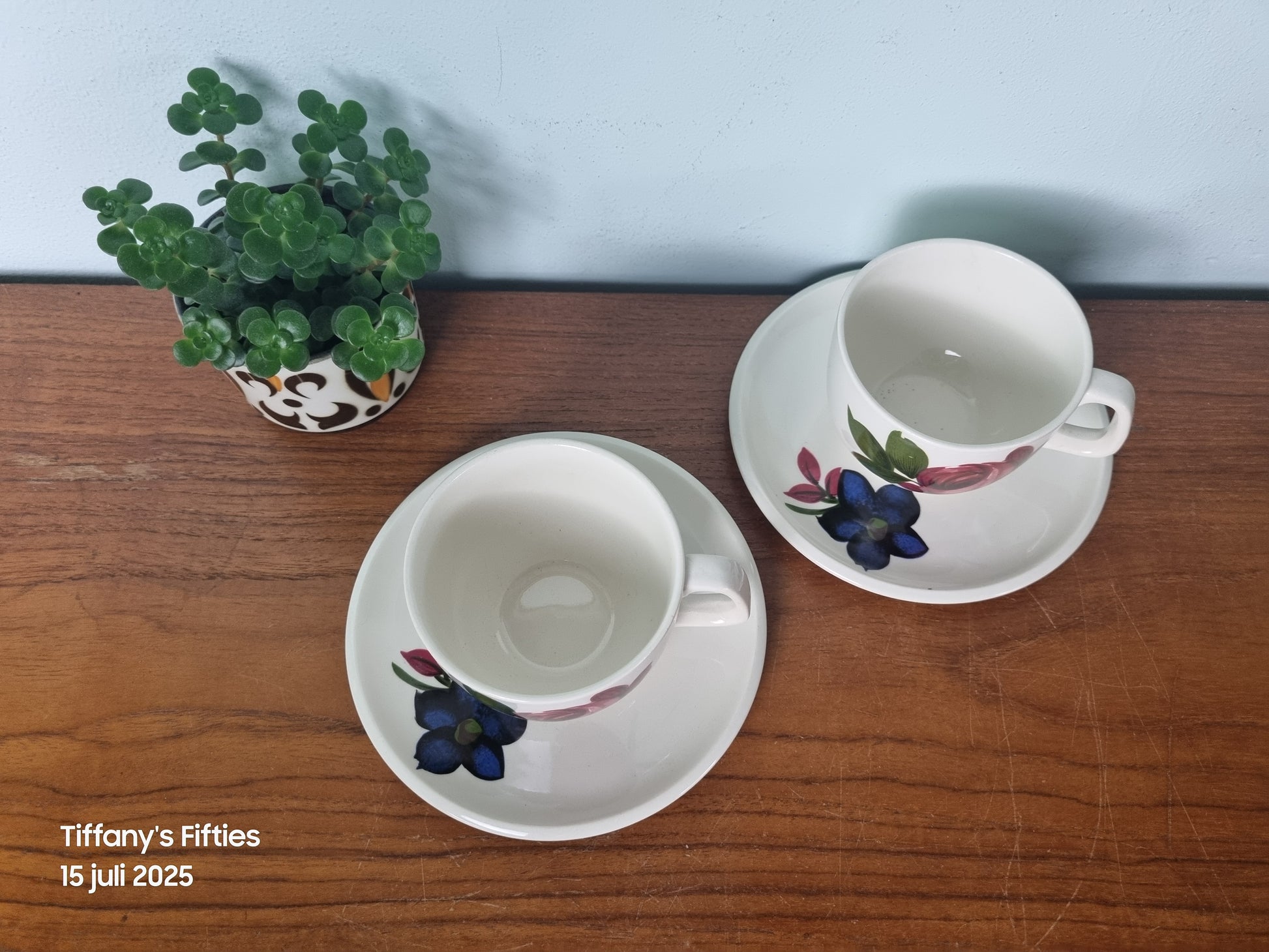 Een romantisch en opvallend servies, ideaal voor een sfeervolle koffietafel of vintage vitrinekast.