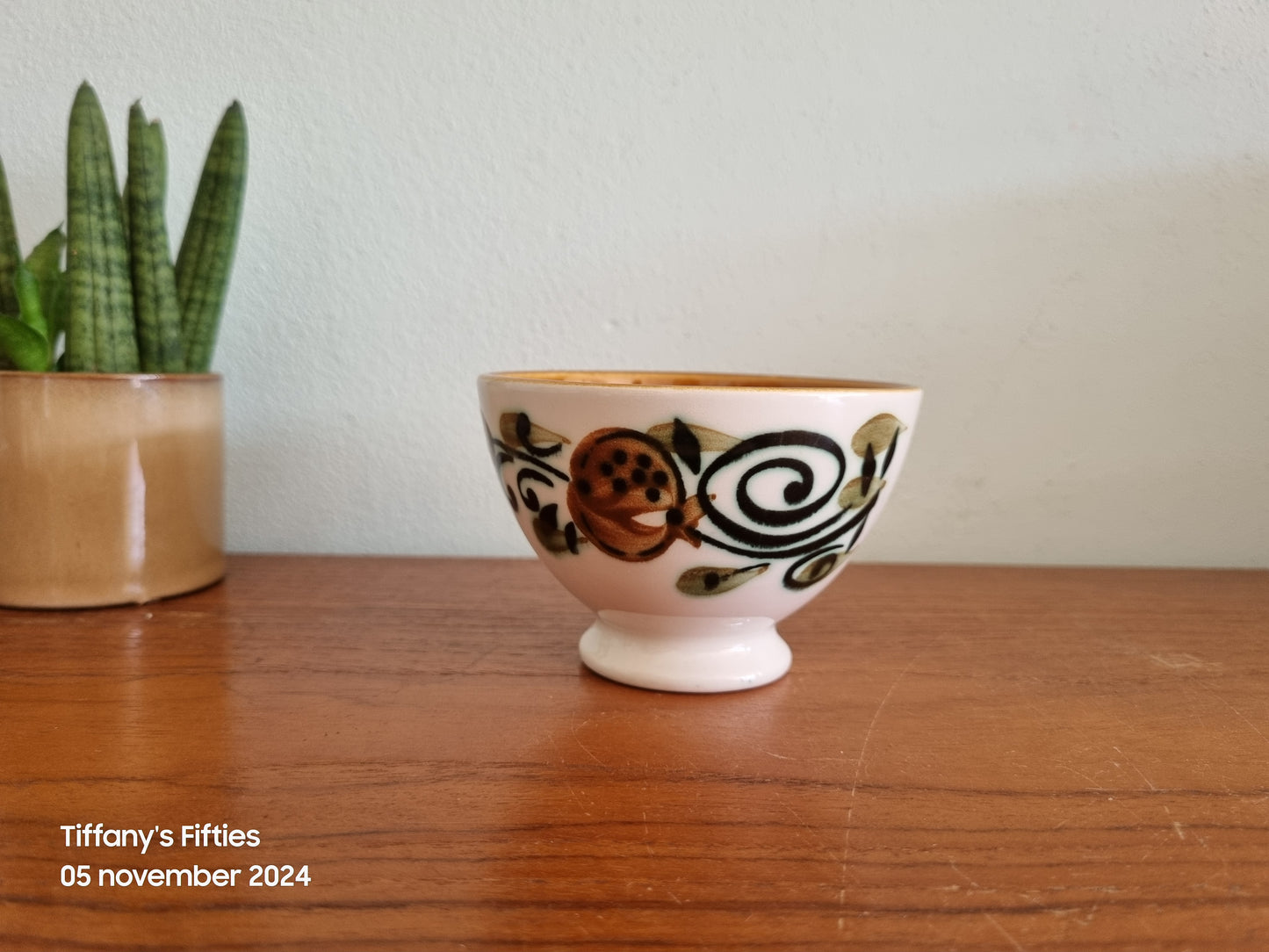Gave spoelkommen van Boch la louvière met vintage handgeschilderd decor Argenteuil, diameter 9 cm. In prima staat.