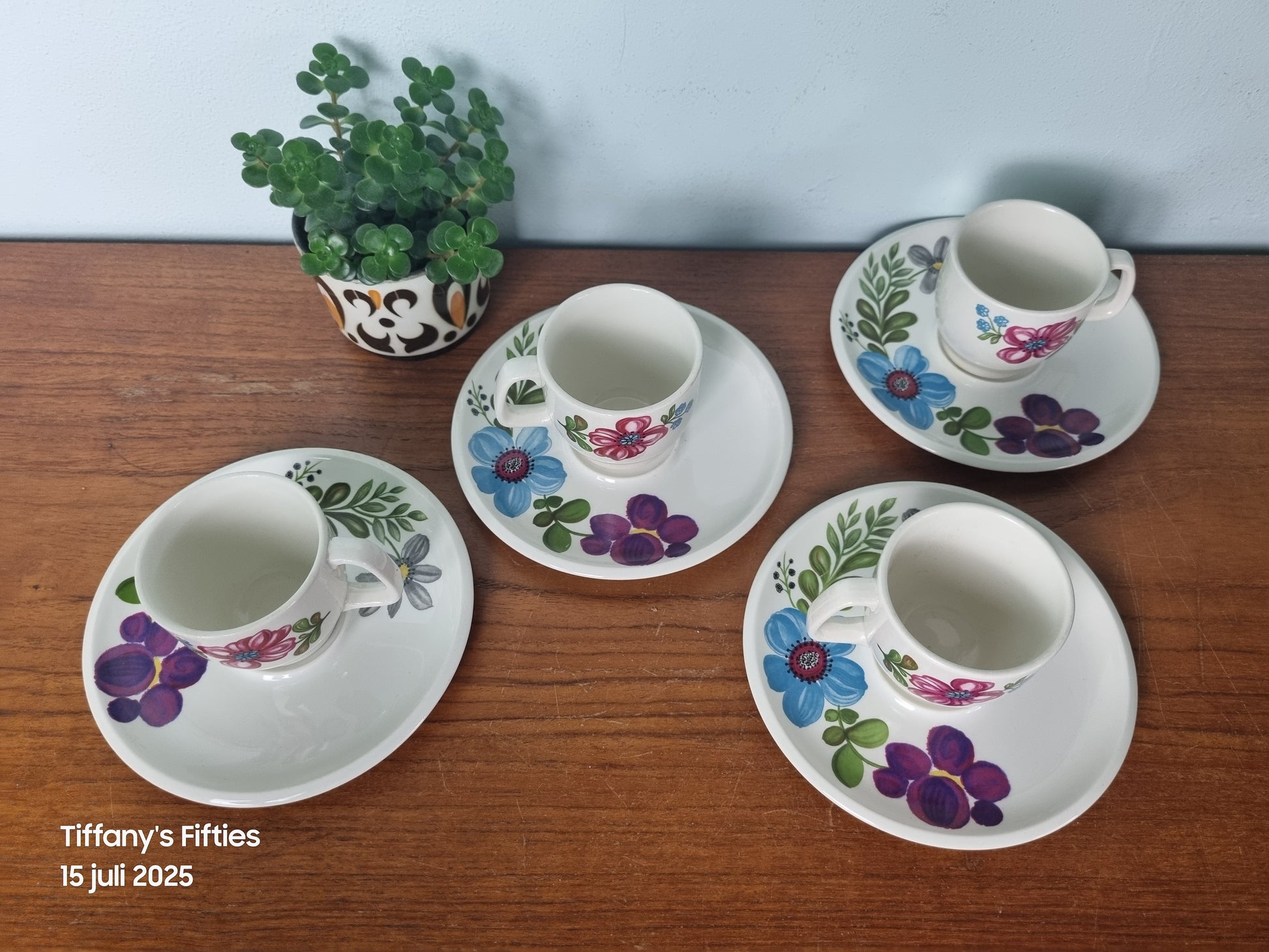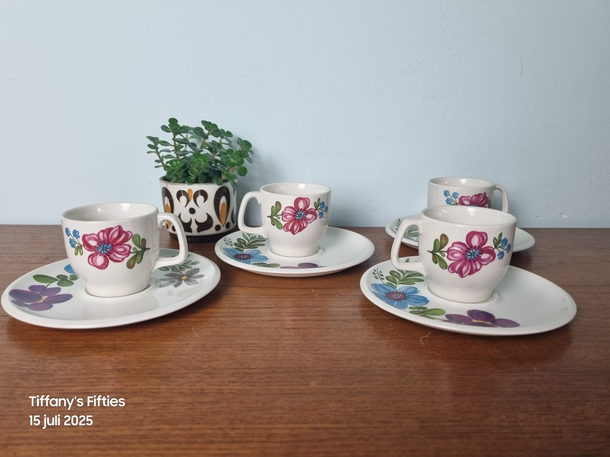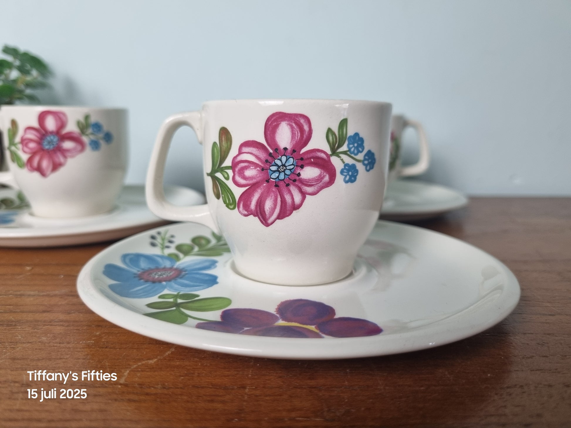 Een vrolijke, speelse set met een uitgesproken jaren '70 uitstraling — ideaal voor espresso of kleine koffies.