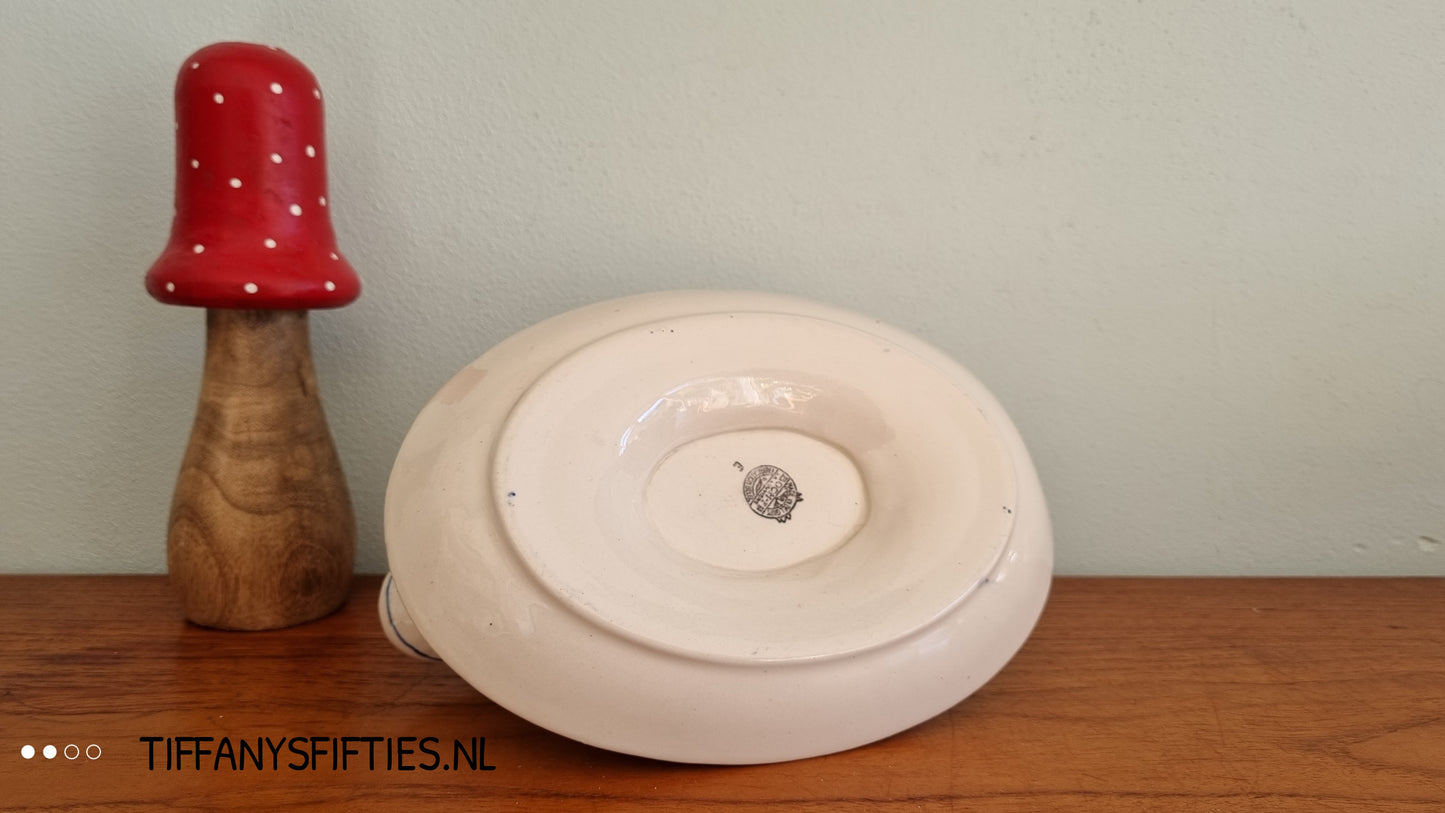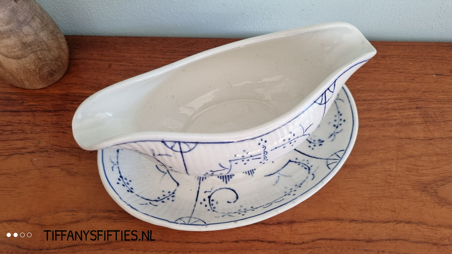 Klassieke sauskom van Boch La Louviere decor Copenhague op vorm Saxe, een van de langsbestaande reeksen van Boch met origine uit 1791. Deze is gemerkt met de stempel uit 1920. Het servies is vaatwasser bestendig.
