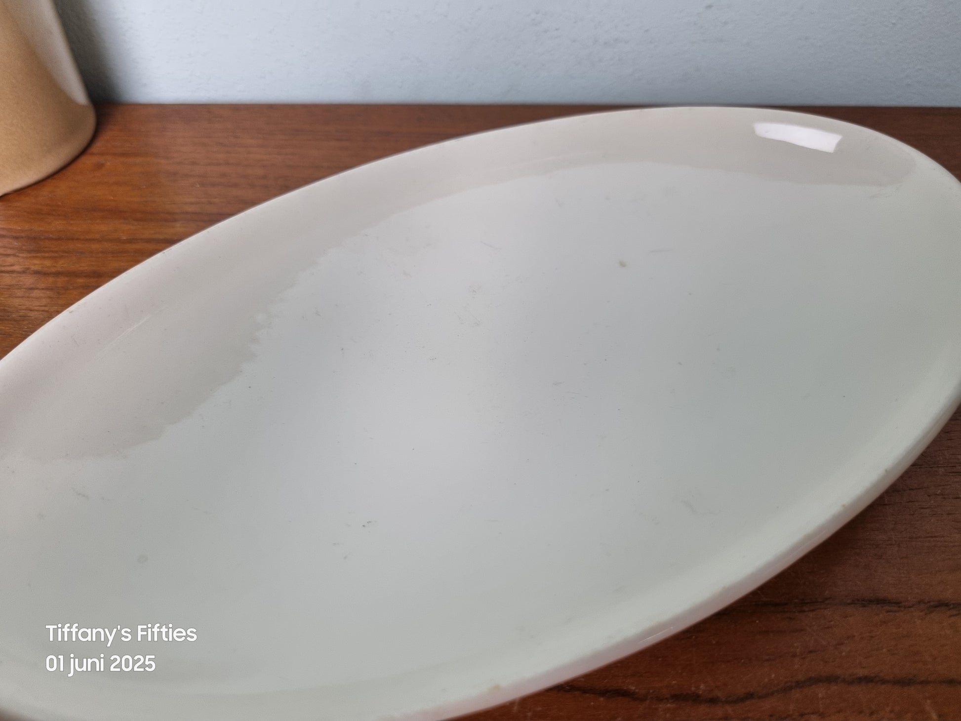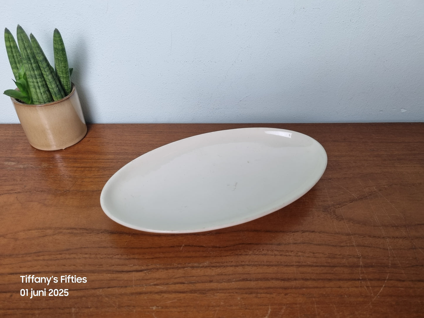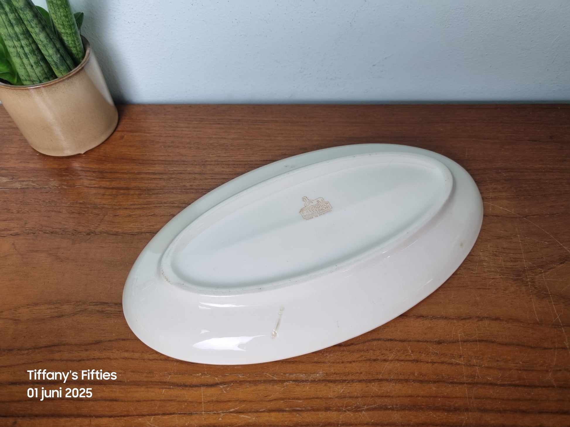 In nette vintage staat – lichte gebruikssporen zichtbaar, maar zonder chips of barsten. Mooi als basisstuk in een retro of tijdloos serviesensemble. Afmetingen 24,5 x 14 cm.