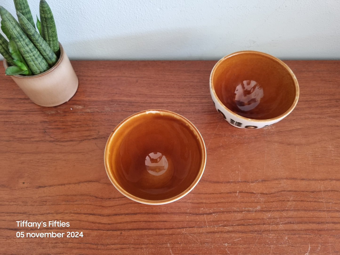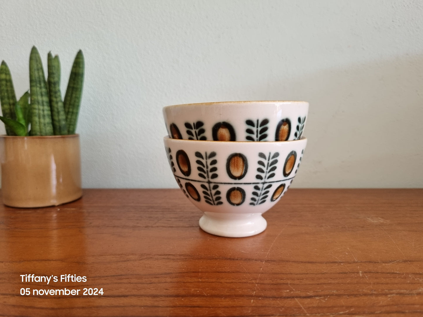 Gave spoelkommen van Boch la louvière met vintage handgeschilderd decor Noix, diameter 9 cm. Elk in prima staat. Prijs per stuk.
