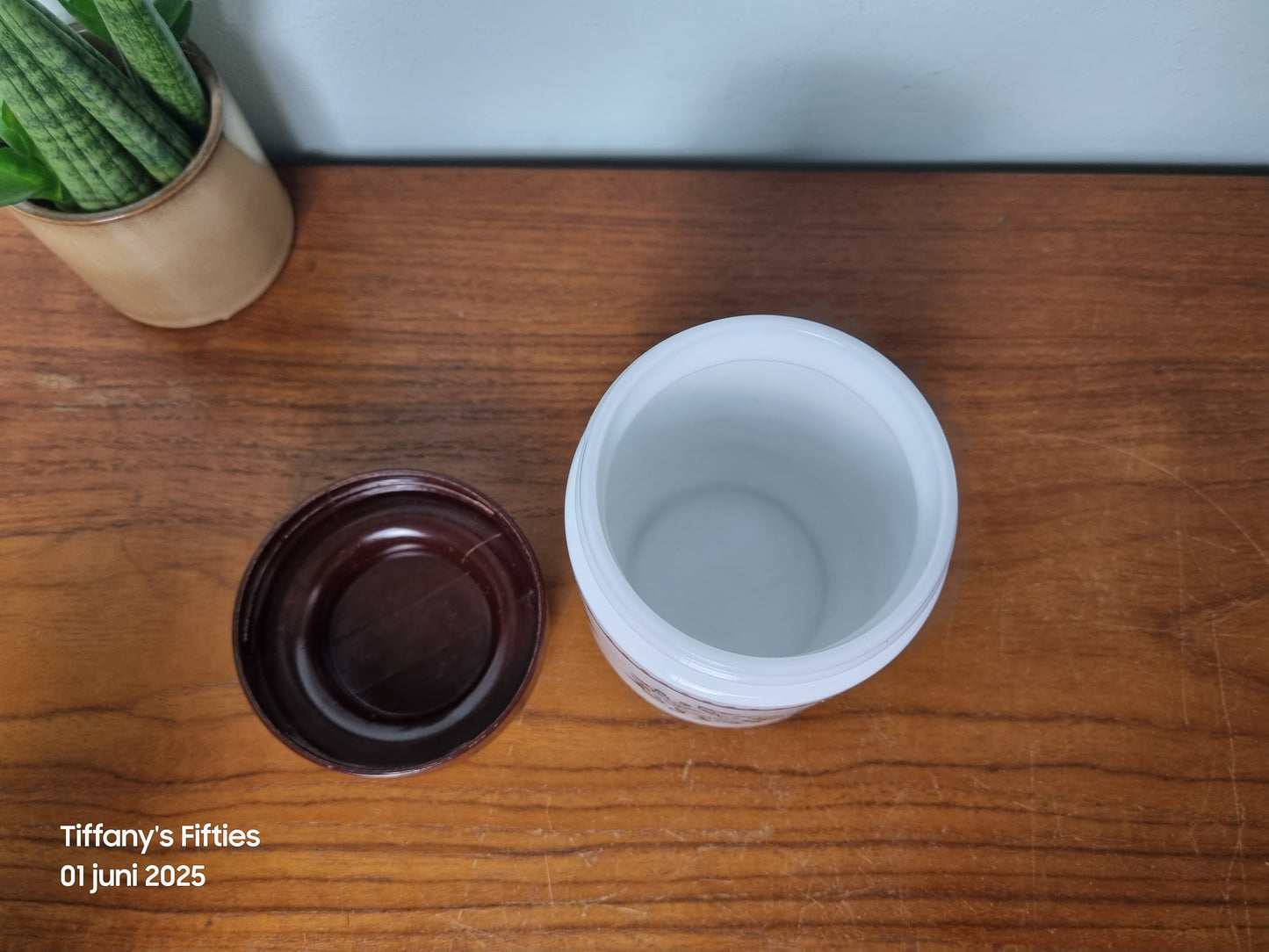 Vintage voorraadpot theetafereel – wit met bruin deksel